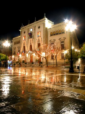 Ayuntamiento de Jaén, Navidad · Canon G2 · AE - Tv 0.6 - Av 4.5 - ISO 50 · Exposición +2/3 - Trípode-disparador retardado y paraguas